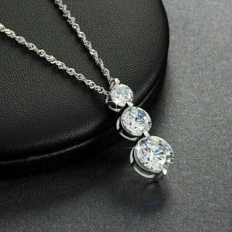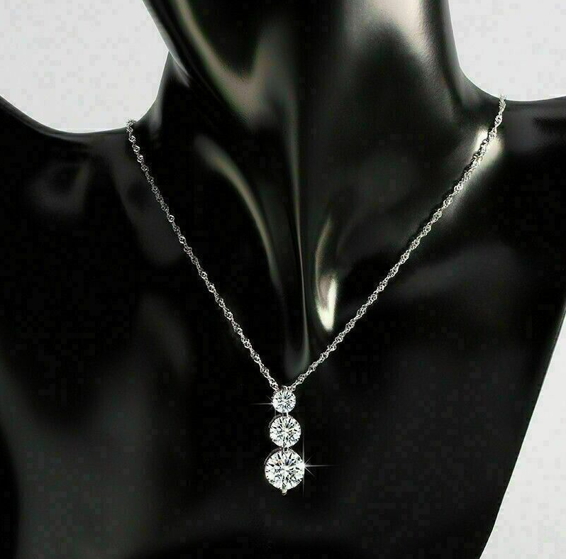 2 Ct Round Cut Simulated Diamond 14k White Gold Over Three Stone Pendant
