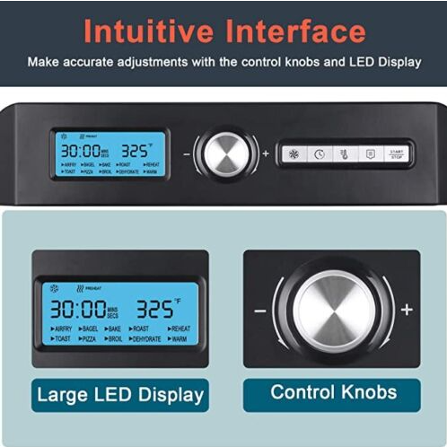 Roast, Broil, Bake, Reheat, Dehydrate, Easy Clean, LED Display, Timer, Temperature Control