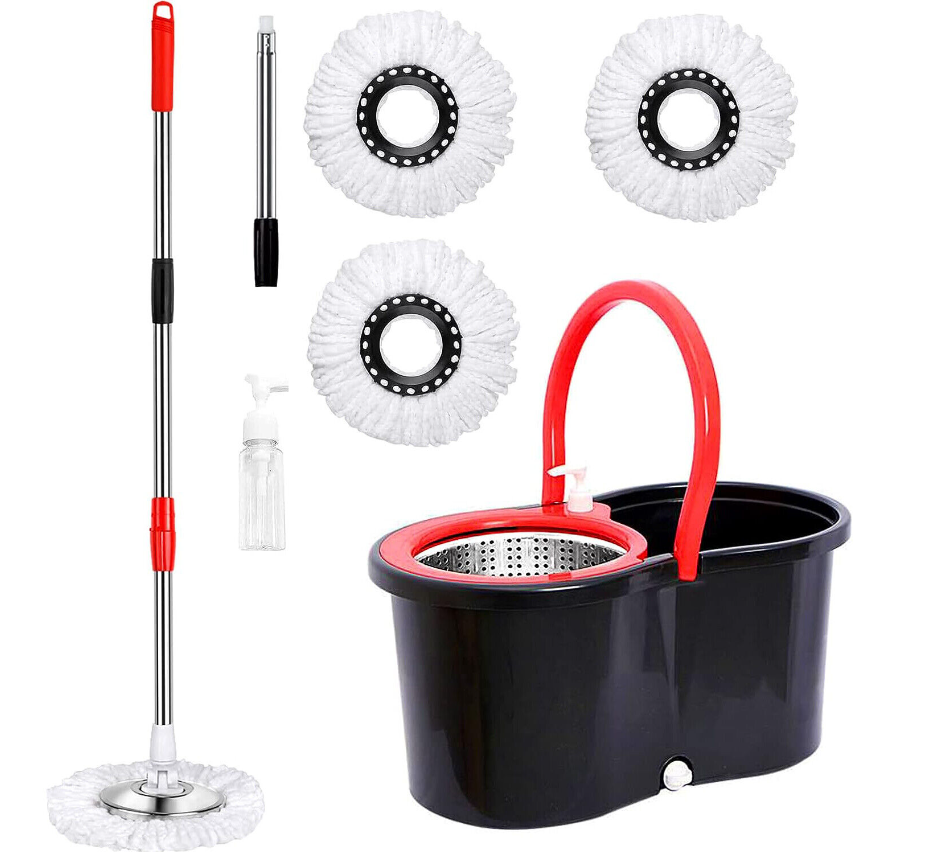 • High quality and upgraded: Our 360-degree mop with bucket is constructed from top-notch stainless steel and polymer. It's rustproof and durable. The swivel mop head is capable of reaching even the smallest corners with ease. An attached carry handle makes it simple to move around.