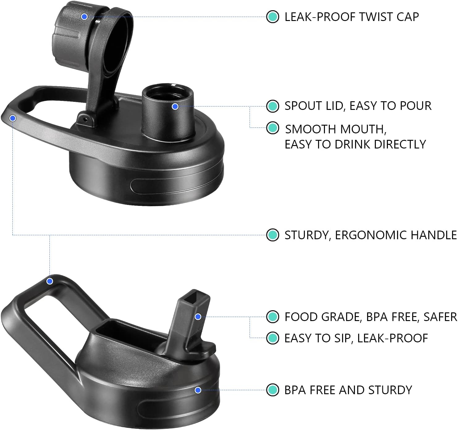Wide Mouth, Leak Proof, Integrated Spout, Double Wall, Straw