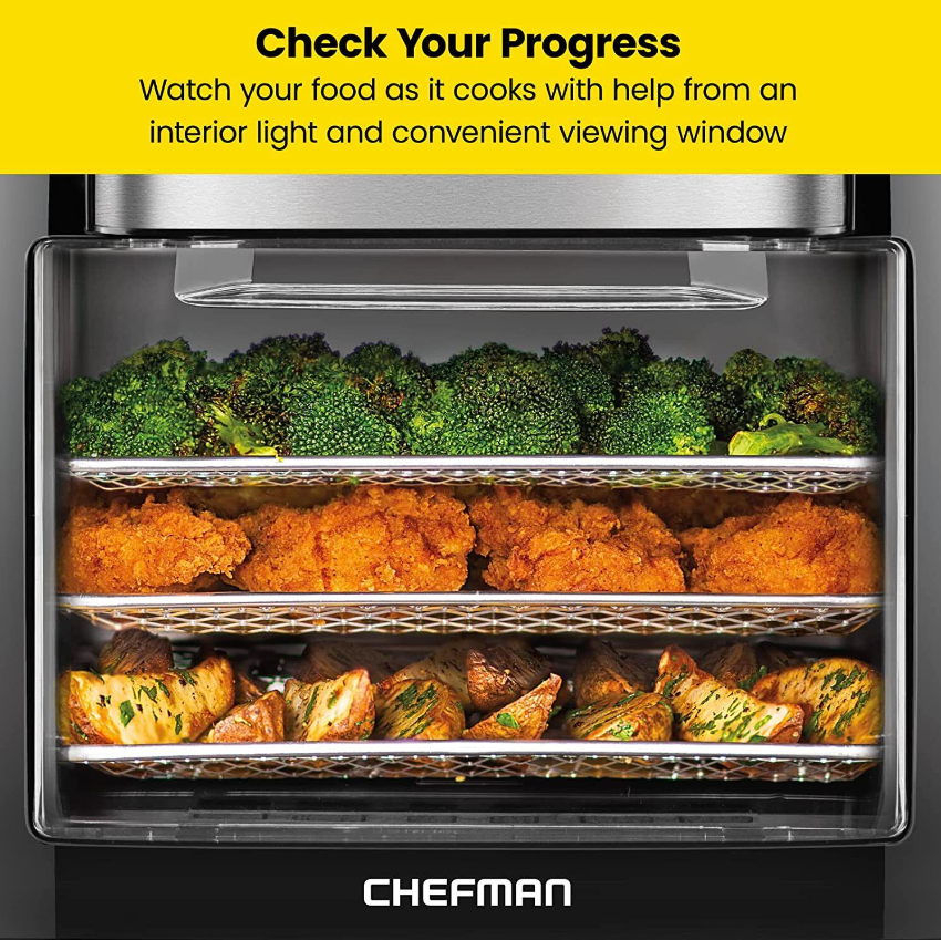 • All-inclusive: Includes three air flow racks, stainless steel rotisserie oven spit and forks, stainless steel rotating basket/retrieval tool, and a drip tray.