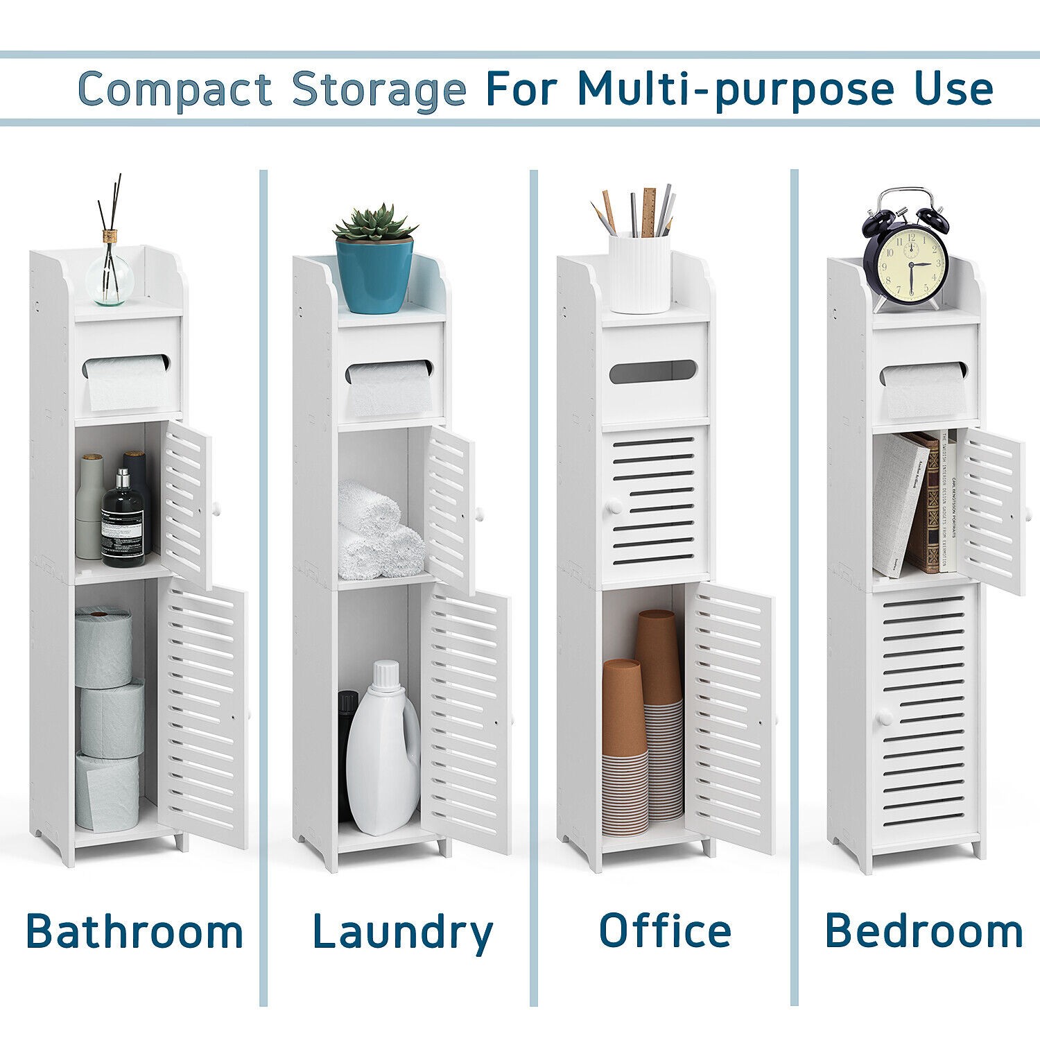 Bathroom Storage Cabinet Floor Standing Toilet Paper Organizer Shelves with Door