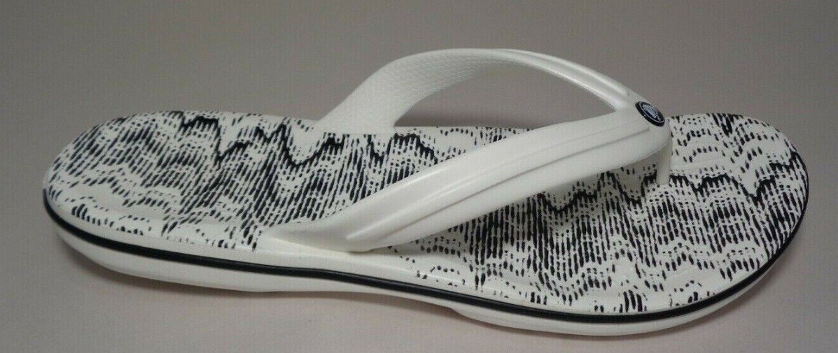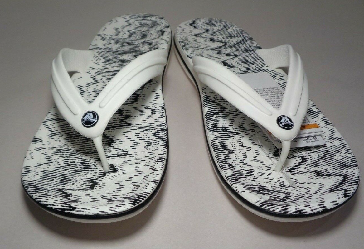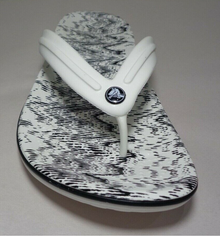 Crocs Size 12 CROCBAND CARDIO WAVE FLIP White Black Sandals New Women's Shoes