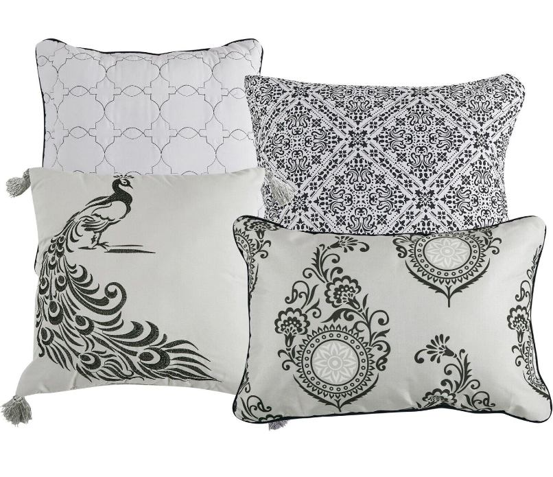 A fashion forward comforter set with everything you need for a complete bedroom décor makeover. This luxury comforter set is a lavish and chic addition to any bedroom. They will transform your room into a charming and tranquil space.