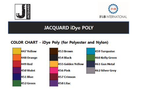 • Jacquard iDye Poly is for synthetic fibres such as polyester and nylon.