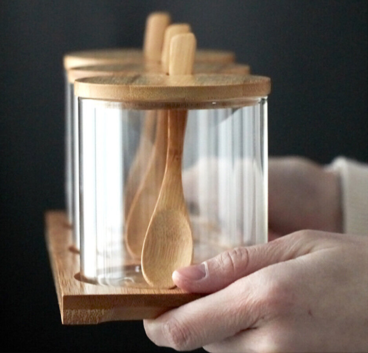 Bamboo wood base, fine texture, convenient and easy to use, the capacity of a single jar is about 400ml.