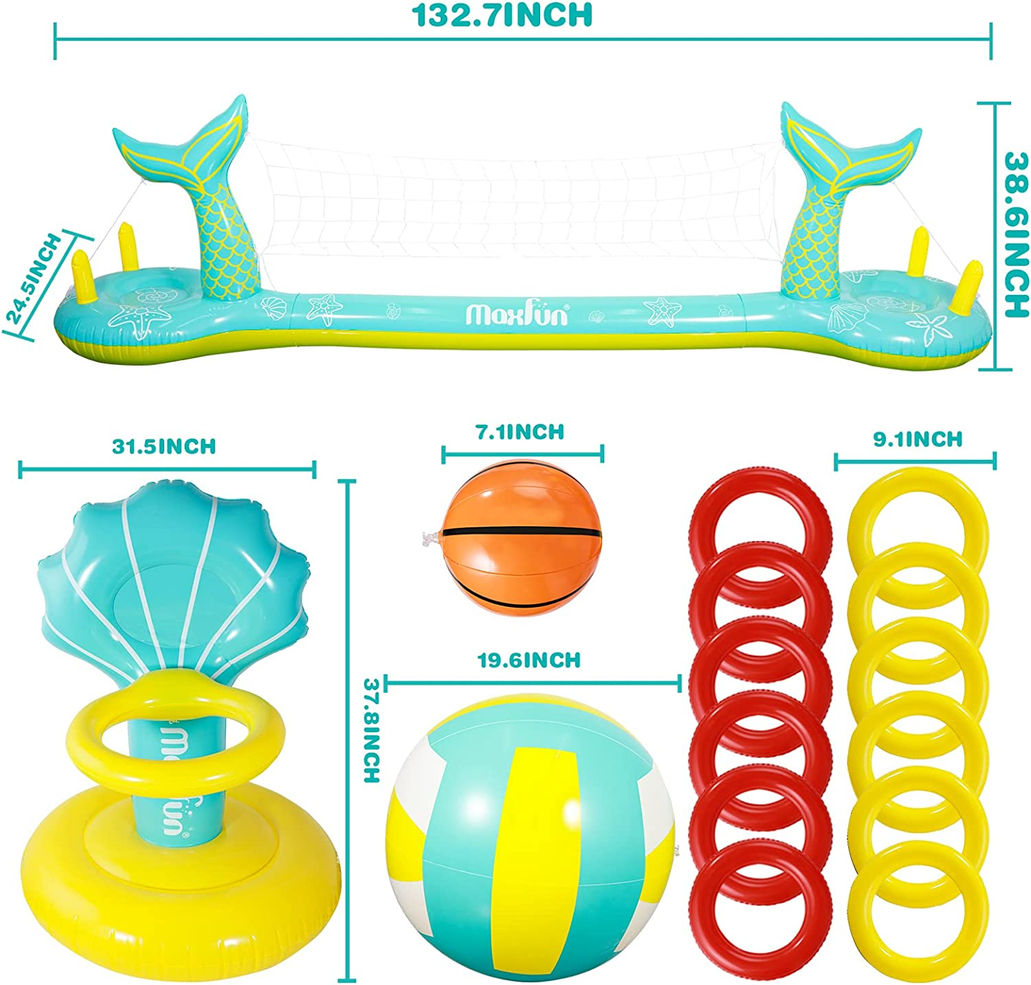 Max Fun Pool Floats Toys Game Set Floating Basketball Hoop Inflatable Ring Toss