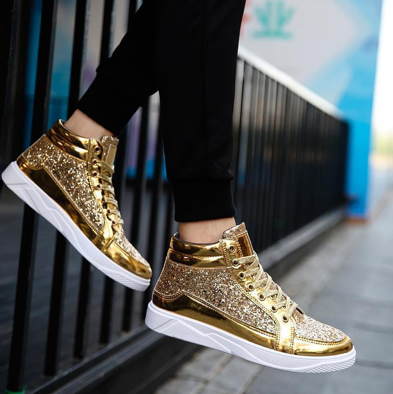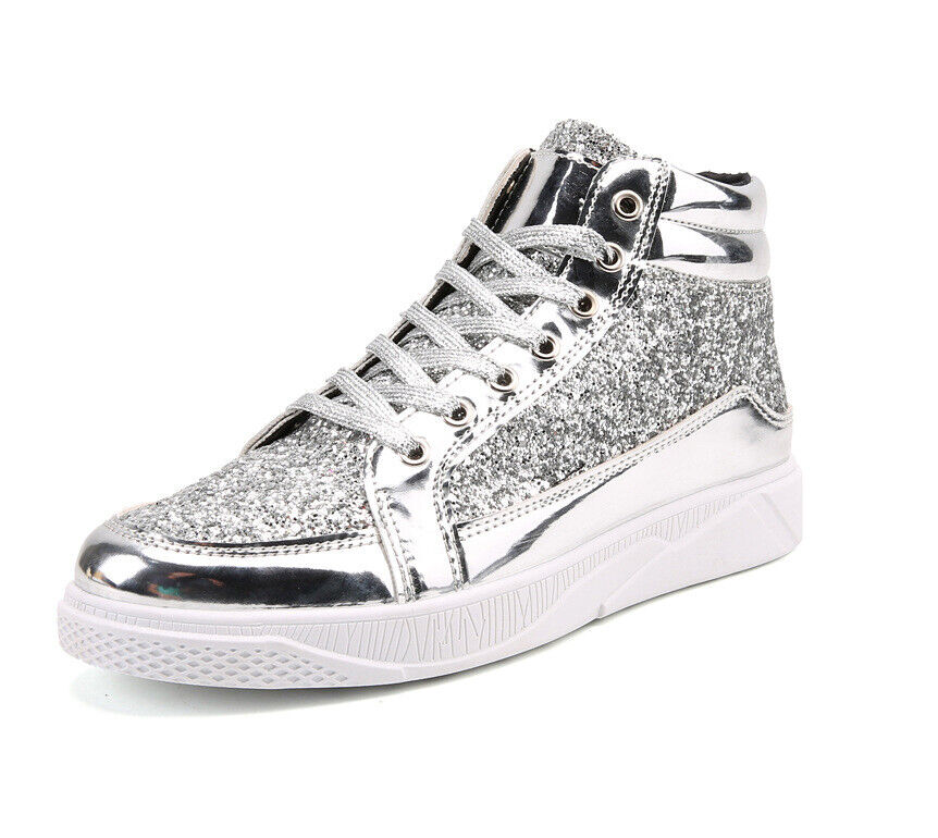 Mens Sequin Ankle Boots Flat Lace Up High Top Shiny Casual Fashion Trend Shoes | Etsy