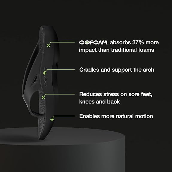 • OOfoam Technology - Our revolutionary OOfoam technology absorbs 37% more impact than traditional footwear foam materials to reduce the stress on your feet, joints & back. Plus, the closed-cell foam is machine washable and designed to minimize odor.