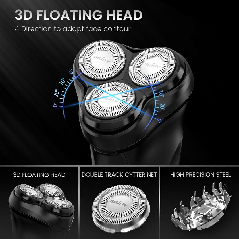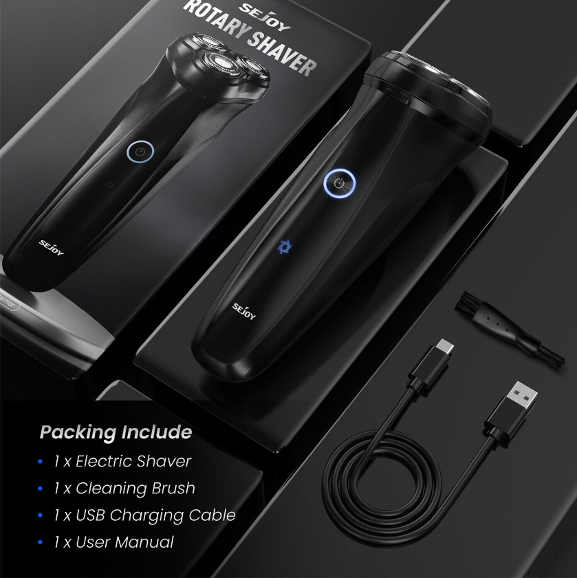 Sejoy Electric Razor for Men 3D Rotary Shaver Rechargeable Beard Pop-Up Trimmer