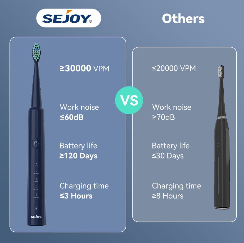 • 【One Shopping For 2.5 Years】:The Sejoy rechargeable electric toothbrush is more durable than similar electric toothbrushes on the market with 8 slender, sturdy, and flexible DuPont Brush Heads.Each brush head lasts 3 months so 8 will last for 2.5 years.