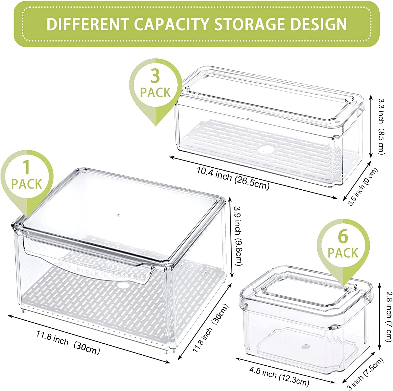 Set of 10 Refrigerator Organizer Bins Stackable with Lids, Fridge Organizers and