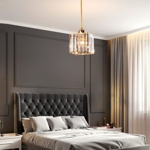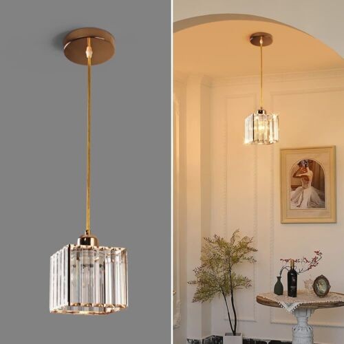 Single Mini Pendant Light Fixture Modern Crystal Gold Kitchen Island Hanging New