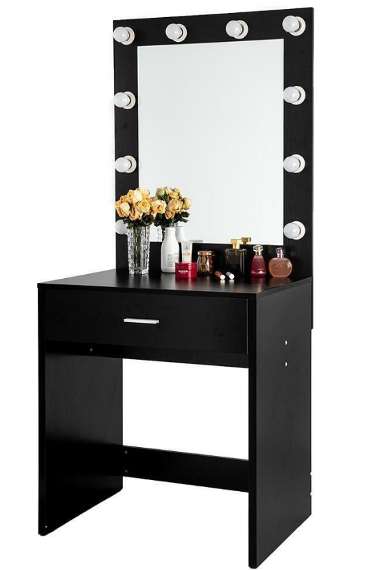 10 LED Lighted Vanity Table Set with Huge Mirror and Drawer Makeup Desk- ★sleek and simply, contributes both fashion and practicality to your bedroom or changing area