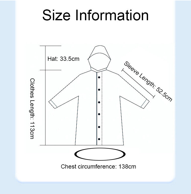 Thickness of 0.13mm, this raincoat is durable and tear resistant.