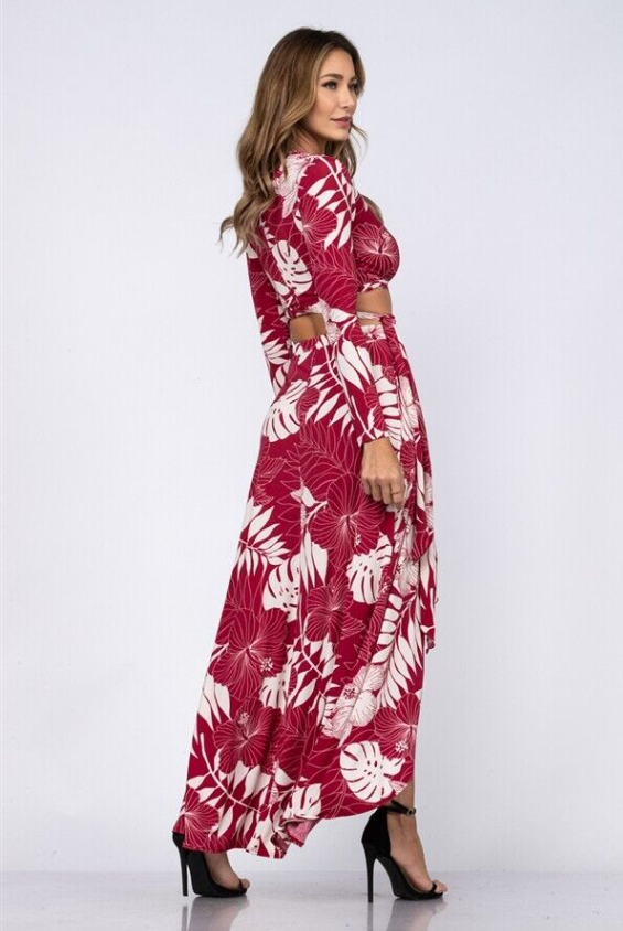 Wine Red Floral Crop Top and Maxi Skirt Set Size Medium Summer Travel Tropical