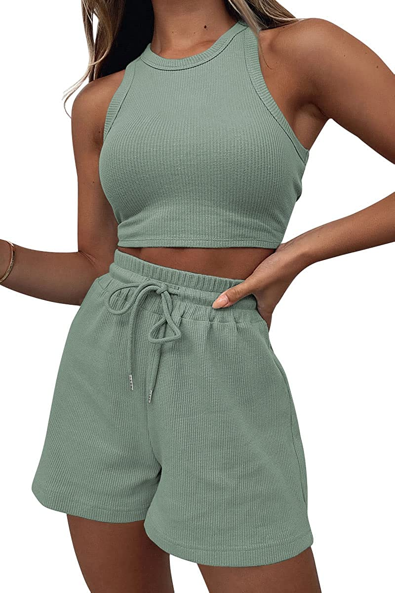 Womens 2 Piece Outfits Lounge Matching Sets Two Piece Linen Shorts Spring Tops 2