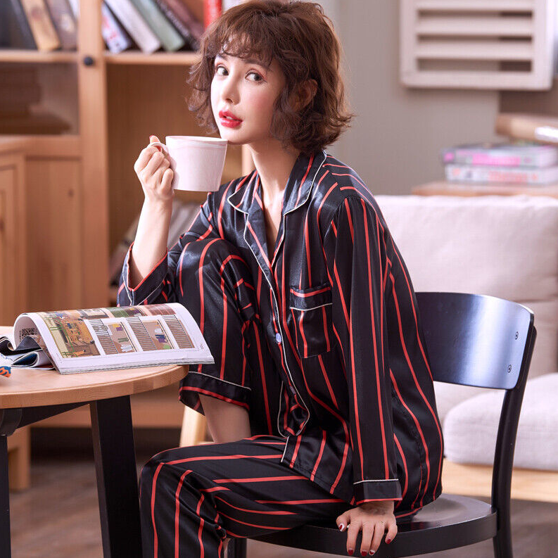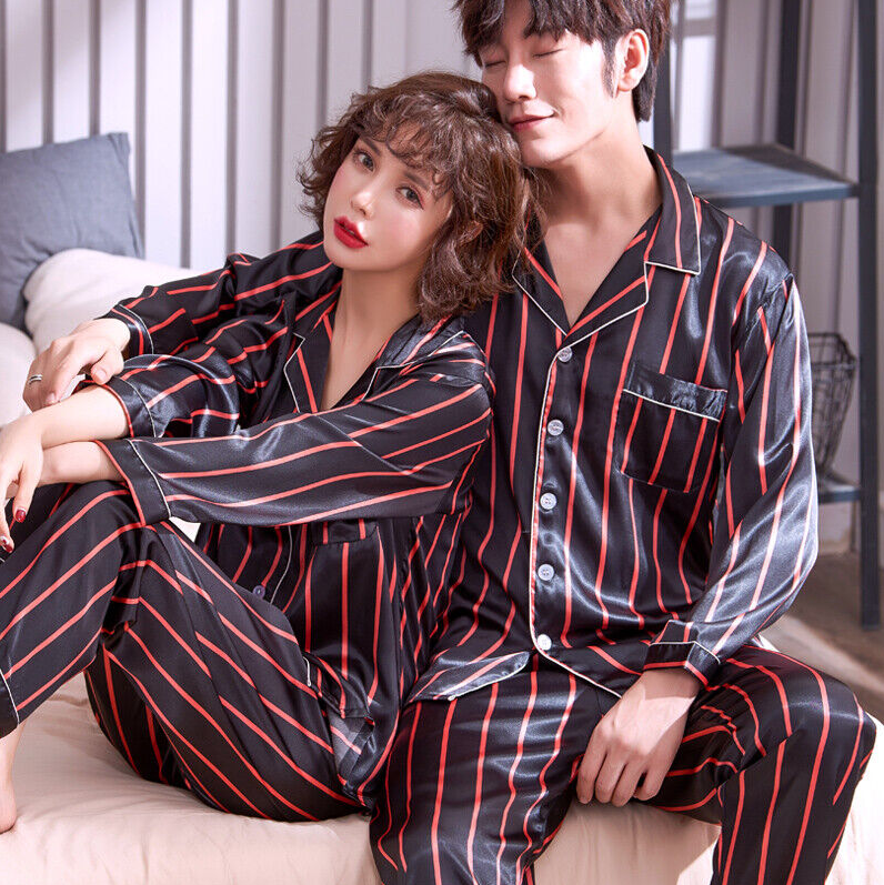 Womens Mens Silk Satin Pajamas Sets Sleepwear Long Sleeve Pyjamas Nightwear Soft