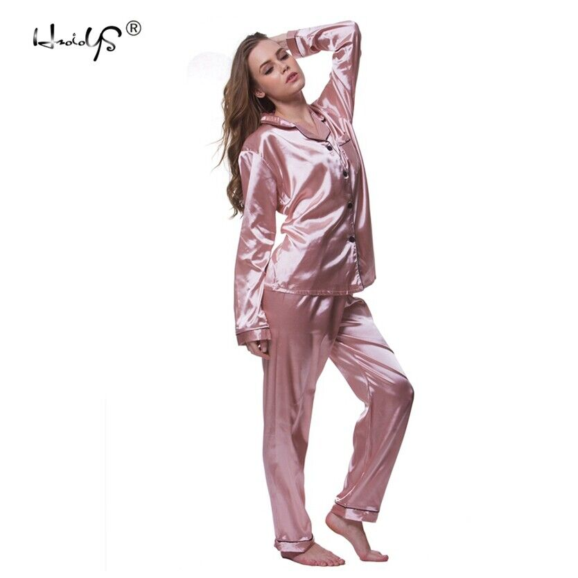 Women's Satin Pajama Set Classic Button Down Loungewear Long Sleeve Sleepwear Pj